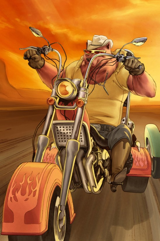 Joe Kelly has shown himself to be an interesting writer… flexing around a sort of jokey, mixed intellectual/toilet humor voice, capable of coming up with massive storylines when pressed… and capable of churning out regular comic chum when needed. And then whipping out the odd bastard child that probably had a good heart (Bang! Tango…) but not much else to give it merit. When Kelly suddenly reappeared around 2009 or 10 or 11 or whatever, he spat out several books in a row – Four Eyes, I Kill Giants, some Spider-Man work… and Bad Dog. Though there were the mentioned ups and downs based on which book you were reading, it was good to see his name again, as Kelly is like a more friendly Grant Morrison, which was especially shown with Morrison’s Joe the Barbarian coming out around the same time as Giants, and both having similar themes.